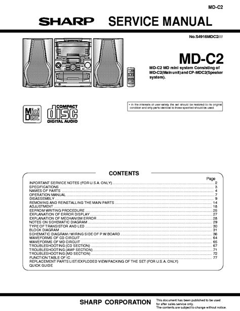 Presently you are looking with regard to an Sharp Md C2 Service Manual example of which we provide here inside some form of document formats like as PDF, Doc, Energy Point, as well as images of which will make it easier for you to create an Sharp Md C2 Service Manual yourself. For a clearer look, you are able to open several examples below. All the examples about Sharp Md C2 Service Manual about this site, we get from many sources so you can create a better file of your own.