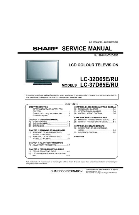 Presently you are looking with regard to an Sharp Lc 32d65e Ru Lc 37d65e Ru Lcd Tv Service Manual example that will we provide here in some form of document formats such as PDF, Doc, Power Point, and in addition images that will will make it easier for you to create an Sharp Lc 32d65e Ru Lc 37d65e Ru Lcd Tv Service Manual yourself. For a better look, you are able to open some examples below. All of the examples about Sharp Lc 32d65e Ru Lc 37d65e Ru Lcd Tv Service Manual with this website, we get from a number of sources so you can create a better document of your own.