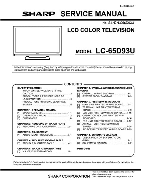 Presently you are looking with regard to an Sharp Lc 65d93u Service Manual Repair Guide example that will we provide here in some kind of document formats such as PDF, Doc, Power Point, and in addition images that will will make it simpler for you to create an Sharp Lc 65d93u Service Manual Repair Guide yourself. For a better look, you may open several examples below. All of the good examples about Sharp Lc 65d93u Service Manual Repair Guide on this site, we get from many sources so you can create a better document of your own.