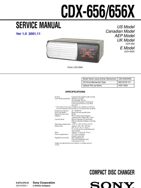 Currently you are looking with regard to an Sony Cdx 656 656x Compact Disc Changer Service Manual example that will we provide here within some type of document formats like as PDF, Doc, Energy Point, and in addition images that will will make it easier for you to create an Sony Cdx 656 656x Compact Disc Changer Service Manual yourself. For a clearer look, you are able to open a few examples below. All the good examples about Sony Cdx 656 656x Compact Disc Changer Service Manual about this web site, we get from several sources so you could create a better file of your own.
